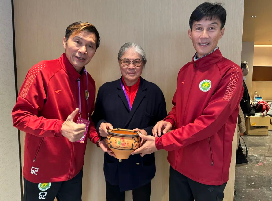 王新軍仰韶文化非遺作品贈(zèng)霍震霆 “全運(yùn)花開(kāi)”彩陶盆傳遞家國(guó)情懷